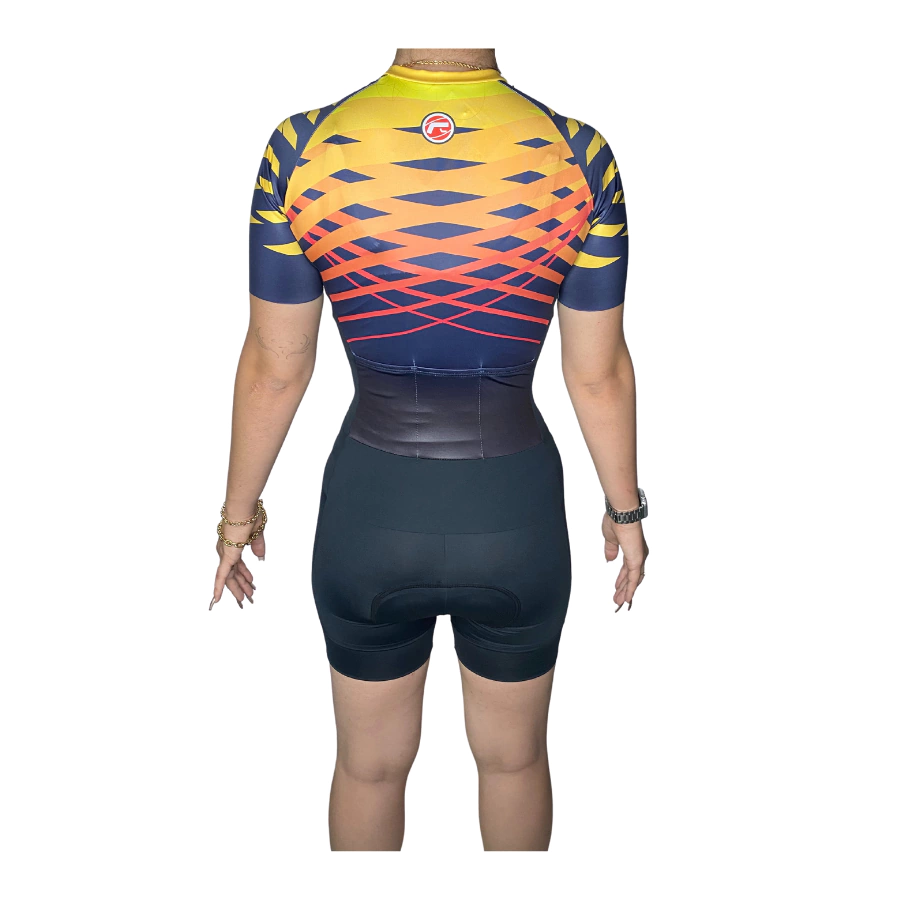 O Macaquinho de Ciclismo Feminino possui forro Barbedo Sprint Feminino, com tratamento antimicrobiano, zíper integral, três bolsos traseiros e Mangas em tecido Glare Dry®. Suas pernas possuem barras em elastano, sem elástico, para maior conforto.